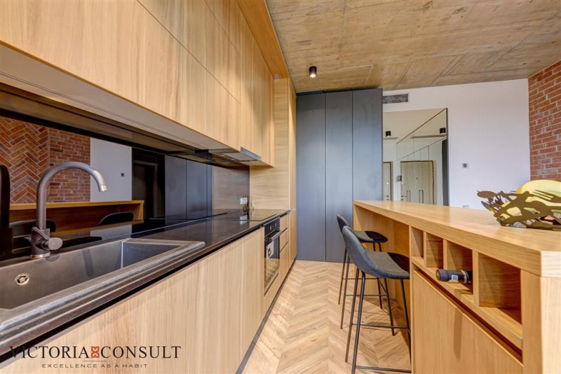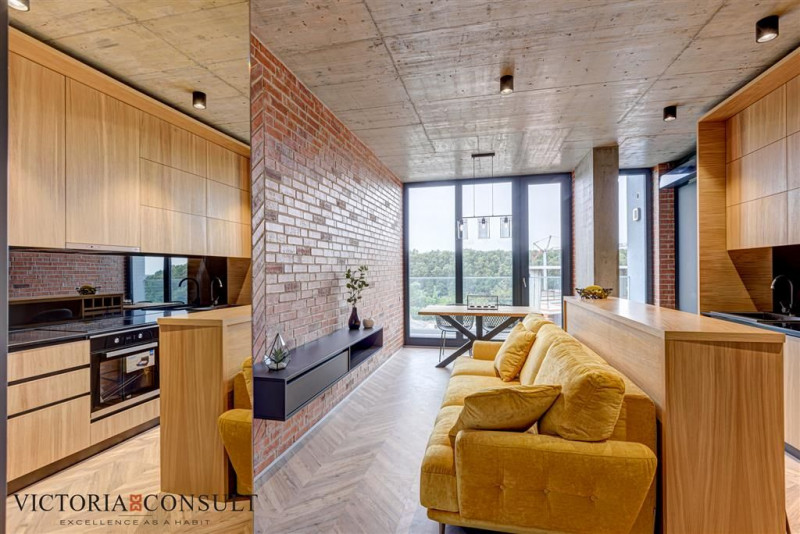 - sunt complet mobilata: mobilierul de bucatarie, living si multe spatii de depozitare, toate sunt realizate pe comanda cu materiale de super calitate, canapeaua este super comoda si are o culoare Wow, iar zona de dining este este elementul central industrial, locul unde in timp ce-ti savurezi paharul de vin privesti cerul si padurea; Apropo, nu ti-am spus ca aceasta priveliste va fi intotdeauna a ta! Da! O vei avea mereu pentru ca celelatle blocuri din ansamblu sunt pozitionate astfel incat nu-ti vor “fura” niciodata privelistea spre soare, cer si padure.