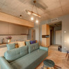 Zona de bar are scaune in stil industrial si un spatiu de depozitare sticle de vin si ca tu sa te simti in filmele americane, daca asta iti doresti.