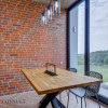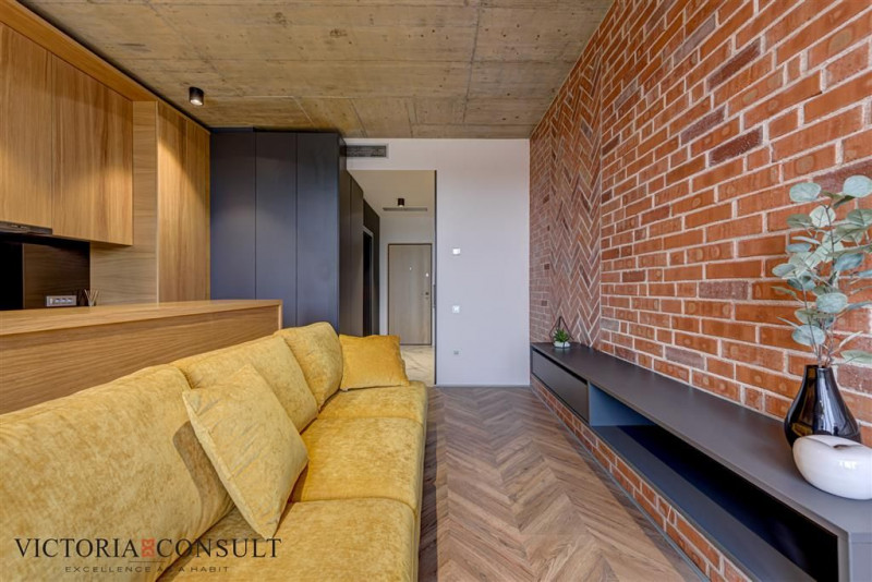 - sunt complet mobilata: mobilierul de bucatarie, living si multe spatii de depozitare, toate sunt realizate pe comanda cu materiale de super calitate, canapeaua este super comoda si are o culoare Wow, iar zona de dining este este elementul central industrial, locul unde in timp ce-ti savurezi paharul de vin privesti cerul si padurea; Apropo, nu ti-am spus ca aceasta priveliste va fi intotdeauna a ta! Da! O vei avea mereu pentru ca celelatle blocuri din ansamblu sunt pozitionate astfel incat nu-ti vor “fura” niciodata privelistea spre soare, cer si padure.