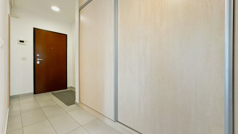 Baia este dotată cu duș walk-in, ventilație naturală prin fereastră și finisaje contemporane, în nuanțe neutre. Holul este generos, cu spații de depozitare integrate, ideale pentru organizare eficientă și acces rapid la lucrurile de zi cu zi.