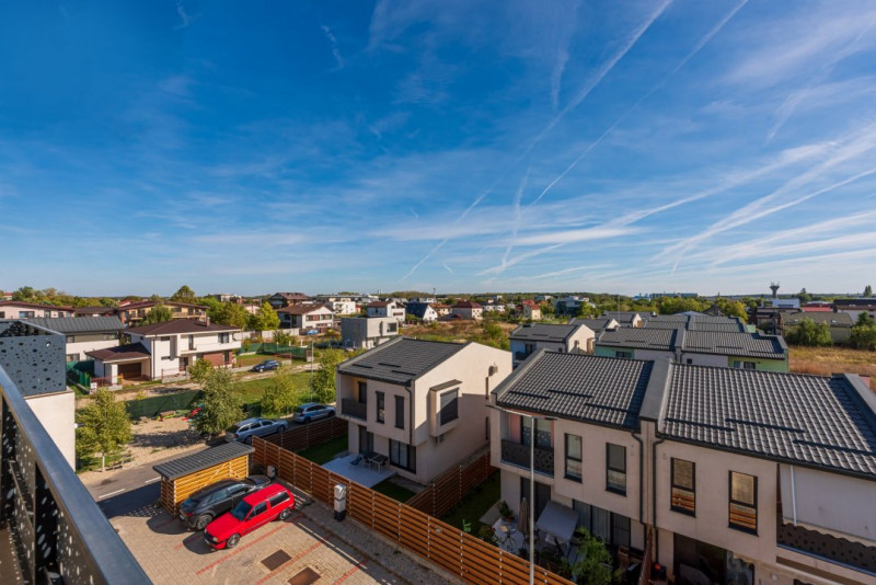 Cand vorbim despre exterior, vorbim despre: bariera cu telecomanda sau cu apel telefonic, drum in incinta de 8 ml latime, infrastructura completa de retele utilitare, transformator electric propriu, iluminat exterior cu senzori de crepuscul, joc de pavele pentru zona pietonala si zona de parcari, spatiu verde, tei, mesteceni, brazi si tuia, parcare auto pentru vizitatori si loc parcare pentru biciclete. Asa-i ca suna bine?! Toate sunt prezente!