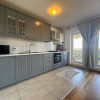 Bucataria este complet utilata si mobilata in stil clasic-modern, cu fronturi gri si electrocasnice incorporate. Ferestrele mari si iesirea spre balcon o fac foarte luminoasa si placuta.