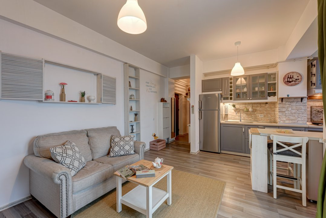 Modul in care s-a imbinat stilul modern cu cel Shabby Chic si soarele care radiaza prin ferestrele cu vedere catre sud imprima spatiului acel sentiment cald de tihna, de liniste, de camin. Iar daca Tu esti in acel moment al vietii cand vrei sa te asezi, sa vii acasa si sa savuezi in liniste un ceai atunci acest camin este exact Acel Acasa Pentru Tine. 😊