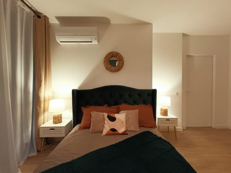 Apartamentul este nou-nout, de la fundatie si pereti pana la mobilier si orice alte accesorii. Este dispus pe doua niveluri. La parter este zona de zi, open space, incorporand bucataria, diningul, livingul si o baie de serviciu, iar la etaj zona de noapte, cu cele doua dormitoare si doua bai.