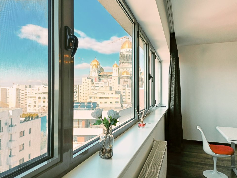 Din living ai vedere catre zona de case, vederea nefiind obturata de nicio cladire ca te poti bucura de culorile cerului 365 zile pe an. Iar de la fereastra, daca privesti in partea stanga, ti se va desfasura in toata splendoarea ei Catedrala Neamului.