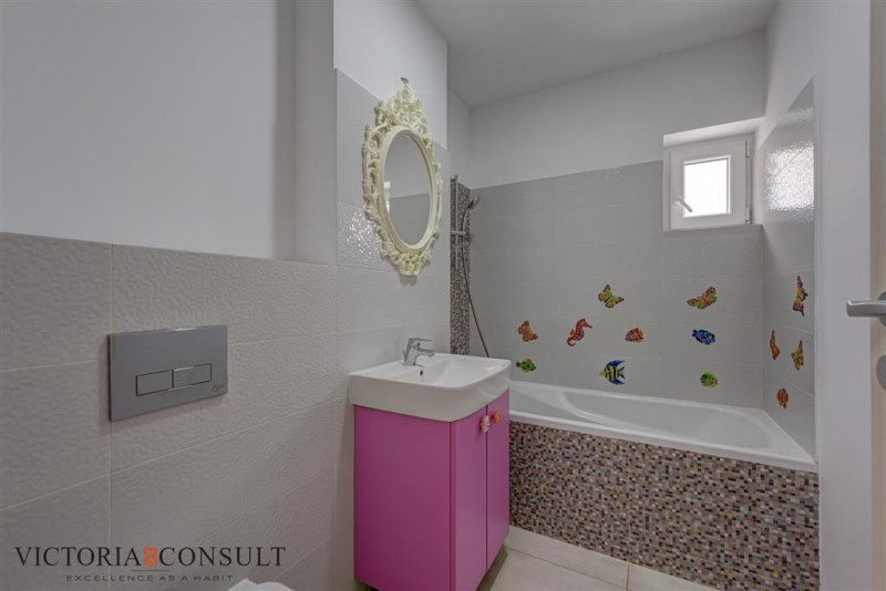 Ai vazut baile? Sunt 2. Foarte frumoase. Una deserveste zona de zi si camera copilului, iar alta deserveste dormitorul matrimonial, cu acces prin dressingu-ul gata mobilat.