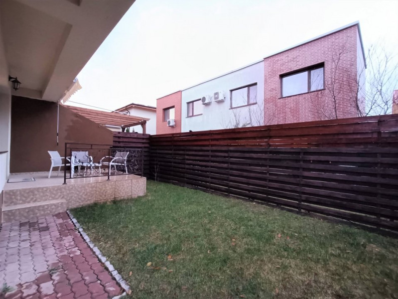 Curtea este oaza de liniste a caminului, iar gazonul verde, verde-crud este o minunatie. Terasa are sistem de acoperire cu rulou ca tu si familia ta sa va bucurati din plin de stat in aer liber chiar si cand ploua sau dogoare soarele. Si mai este si casuta de lemn, tocmai buna pentru biciclete.