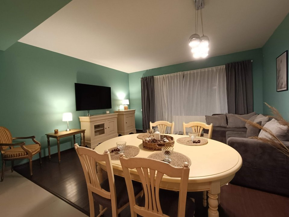 Bucataria este mobilata si utilata cu electrocasnice asa ca nu ramane decat sa va disputati postul de chef in bucatarie :) si, indiferent cine castiga, diningul primitor ofera spatiul ideal pentru ca toata familia sa se bucure de delicioasele bucate gatite.