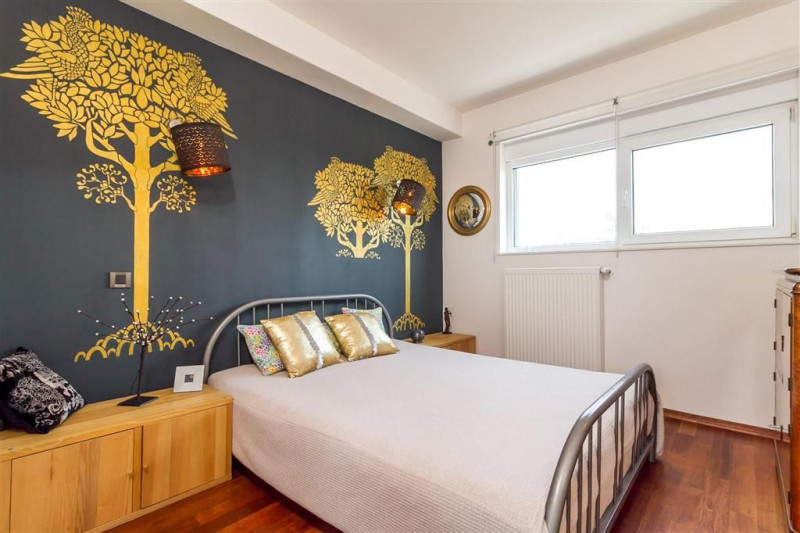 Etajul este compus dintr-un hol cu rol de birou deschis (business center-ul cu birou, imprimanta multifunctionala si spatiile de business storage disimulate in mobilierul facut pe comanda cu un design japonez) si doua dormitoare cu baie proprie. Matrimonialul detine si un dressing bine organizat si o sala de baie mai mult decat confortabila pentru un cuplu rasfatat. Aici avem o cada generoasa, o cabina de dus din sticla securizata (sunt de fapt trei cabine disponibile in toata casa…), chiuveta dubla si bideu. Dormitorul #2 este conceput si decorat in stil “romantic”, cu pictura murala handmade, asa cum este si cea din biroul de la parter. Si aici avem un dressing si un spalier pentru gimnastica. Patul si tablia sunt, de asemenea, handmade.