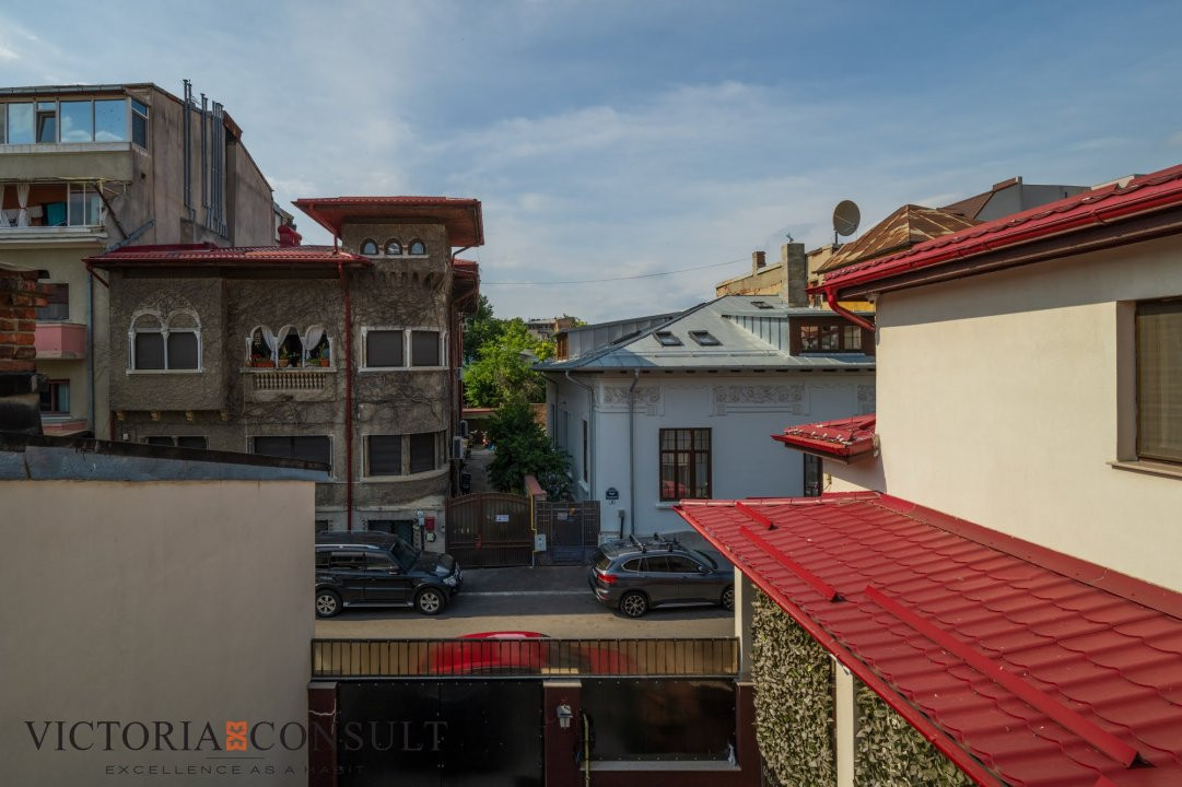 Referindu-ne la locatie, suntem in Centrul Bucureștiului, pe Strada Transilvaniei, la 500 ml de Parcul Cișmigiu si 1,3 km de Piata Romana. Zona este linistita, astfel ca nu deranjeaza nici zgomotul, nici forfota orașului, iar strada a fost modernizată de administrația locala, rețelele electrice îngropate, rețelele de gaz, apa și canal reabilitate, toate fiind subterane. Terenul pe care este edificata proprietatea are o suprafata de 160 mp si dispune de acces auto cu o deschidere de 5.78 ml. Se pot parca in interior 2 masini, iar alte 2 locuri, pe putin, iti stau la dispoziție în fața proprietatii.